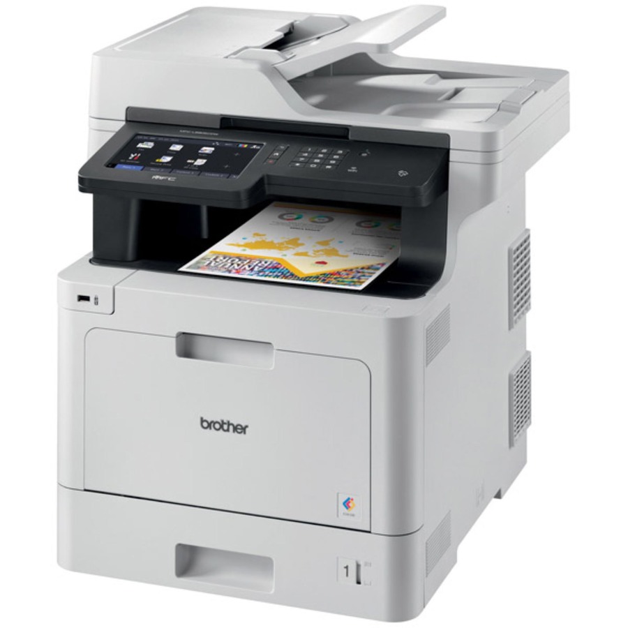 The Brother MFC-L8905CDW color laser all-in-one printer is an ideal choice for workgroups with high print volumes that need low-cost printing, advanced scanning, secure document handling, and reliable, business quality output. This high-performance color laser all-in-one helps to increase productivity with fast print and scan speeds. The large 7″ touchscreen display provides easy menu navigation and allows you to create customized shortcuts to enable workflow productivity. Scalable paper handling helps to meet diverse printing needs. Offers flexible connectivity including built-in Ethernet and wireless networking and convenient mobile device printing and scanning (requires connection to a wireless network) to help meet mobile workforce demands.